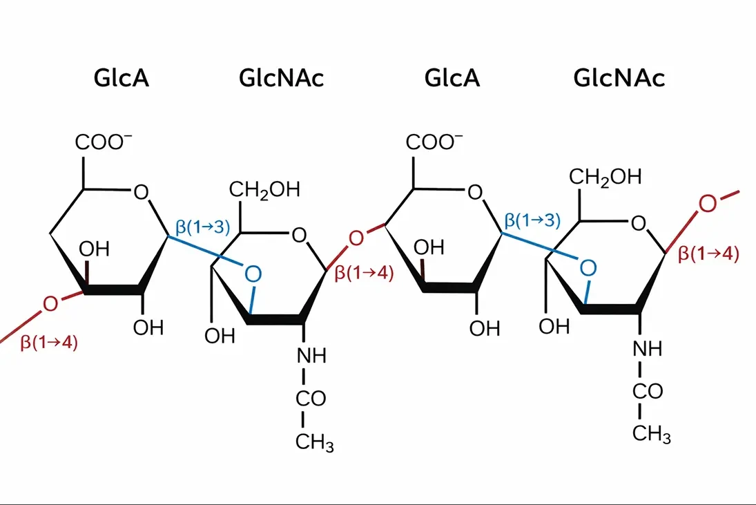Гиалуроновая кислота — это гликозаминогликан, главный компонент внеклеточного матрикса, а также филлеров, которые часто используются в косметических целях.